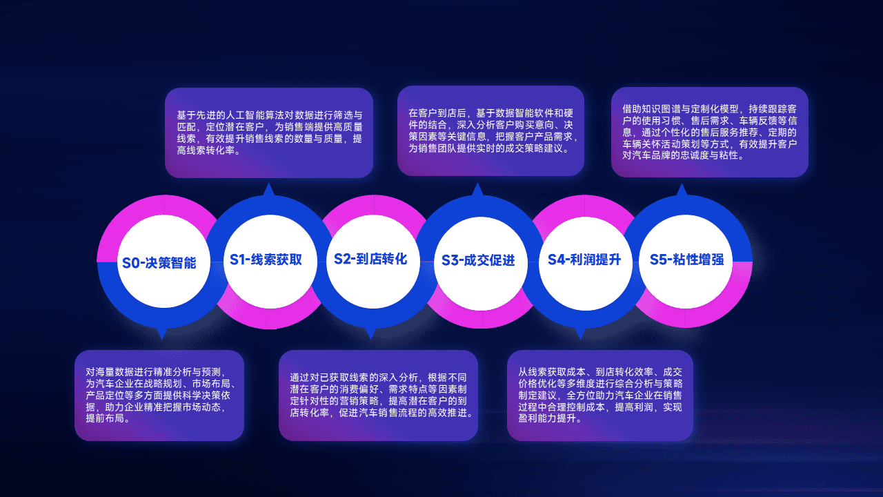 通过拓宽潜在客户来源、、优化线索分配并提高到店转化率,,,以增强销售效率。。。同时,,,利用线索数据不断优化分析模型,,,,有效提升转化率,,扩大营销影响力。。。。